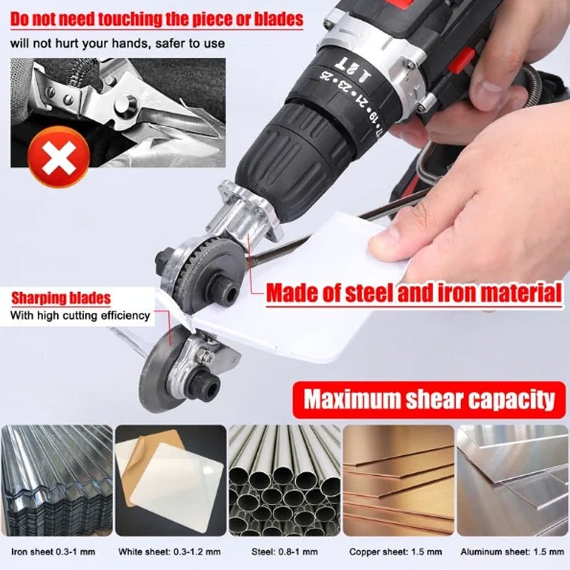 Transform your drill into a powerful metal cutting tool: efficiently cut metal and sheet metal. maximize precision. and complete your DIY and professional projects with ease and efficiency.